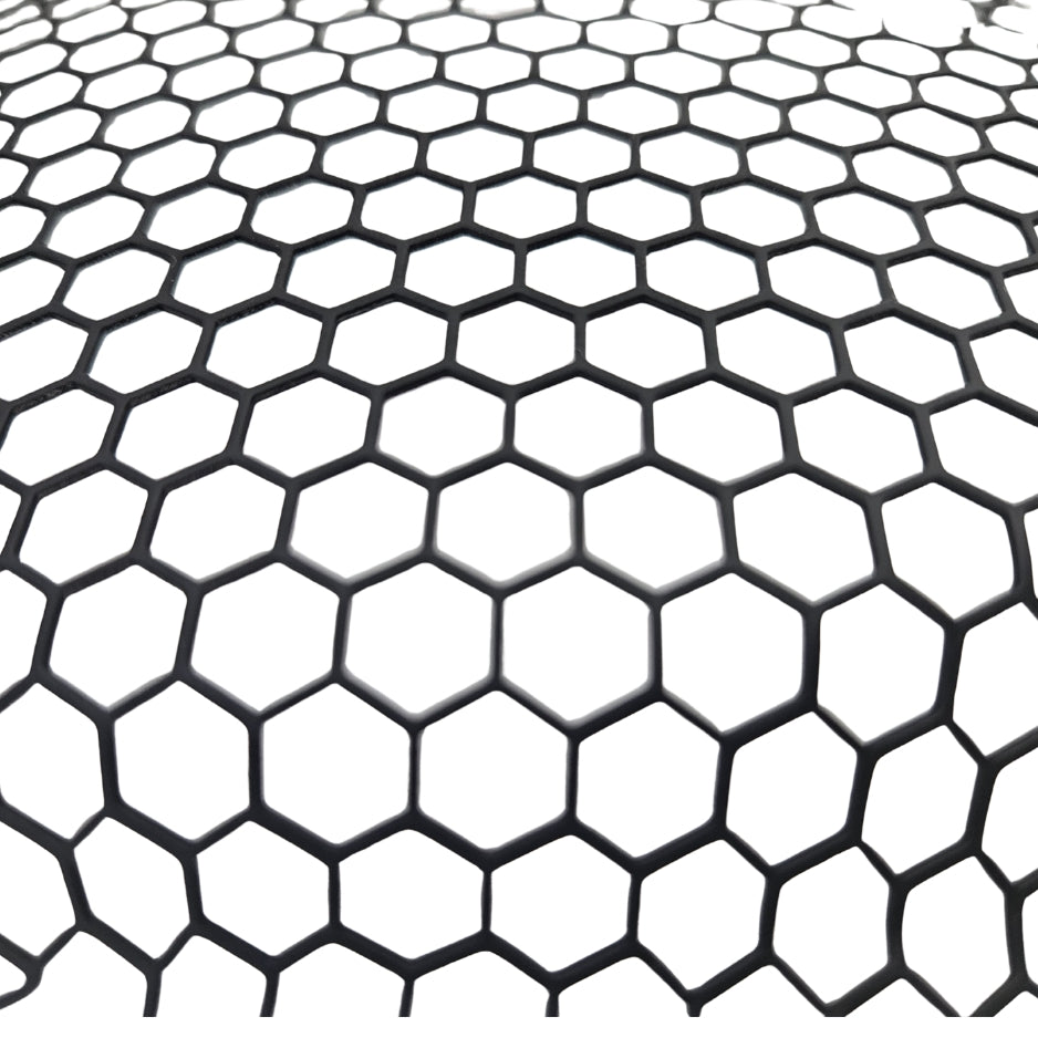Sits under the factory ring—no bolt-on bulk. Hex mesh for higher pass-through and reduced wind noise vs. typical clip-ons. No drilling; fully reversible.